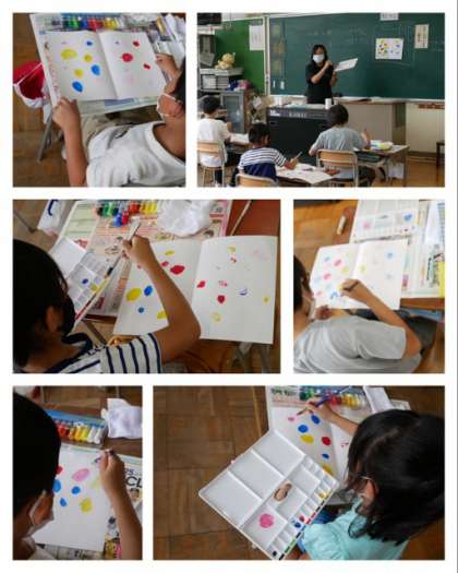 2年は、図画工作科で初めて絵の具を使いました。