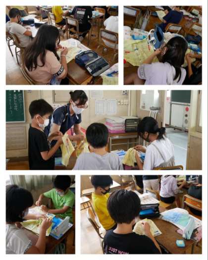 5年生は、家庭科で初めての裁縫をしていました。針に糸を通して玉結びと玉止めを練習しました。