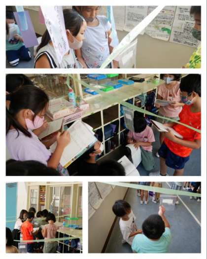 3年は、昨日捕まえた昆虫の体のつくりを観察して記録しました。