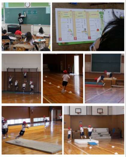1年は、国語科では、初めて「一、二、三」の漢字を学習しました。これからたくさんの漢字を覚えて漢字博士になってほしいです。また、体育館で跳び箱を跳んだり、ロイター板を使ってジャンプしたり、肋木に登ったり、平均台を歩いたり、体育器具を使って遊びました。とても楽しそうでした。