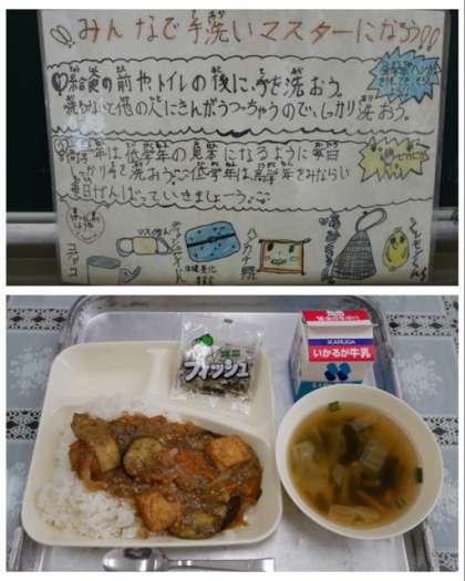 高学年の廊下に「みんなで手洗いマスターになろう」というポスターが貼り出されています。手洗いについての意識が高まってきています。