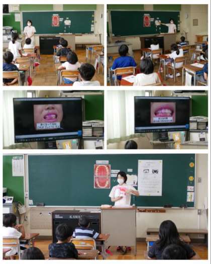 2年は、歯科衛生士さんから歯磨きの磨き残しが多い場所や正しい歯磨きの仕方について教えていただきました。みんな真剣に聴いていました。