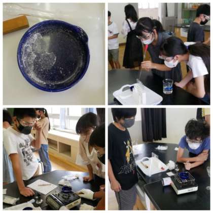 6年は、理科で5種類の水溶液の違いを蒸発させて確かめました。水溶液を蒸発させると白い個体が残るものと、何も残らないものに分けられました。