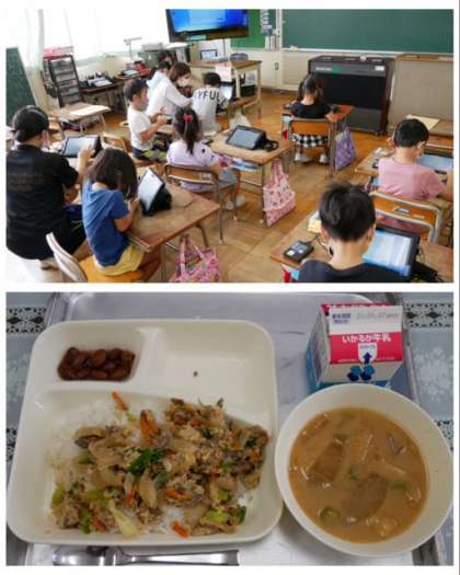 今日の給食の献立は、「ごはん、牛乳、他人丼、冬瓜のみそ汁、金時豆の煮もの」でした。