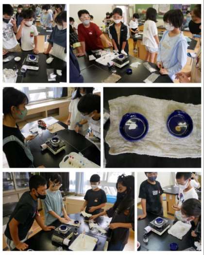 6年は、理科「水溶液と金属」で、うすい塩酸で鉄やアルミニウムが溶けて見えなくなってしまった金属のゆくえについて液体を蒸発させたらどうなるかを実験しました。