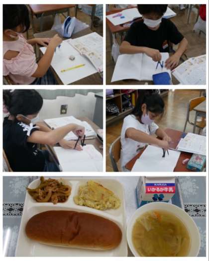 3年は、算数科の学習でコンパスの使い方を習いました。コンパスの操作に慣れて、いろいろな大きさの円をノートに描いていきました。