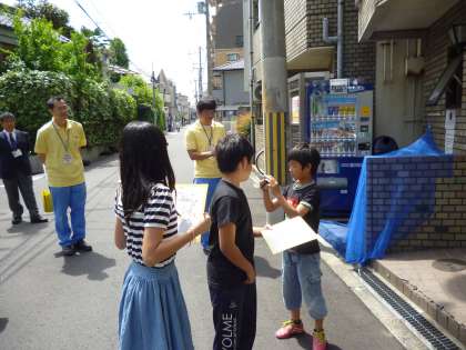 第1日目は、5年生児童が6班に分かれ、見守り隊・区役所・警察・ハートフレンドの方々と校区を探検しました。どんなことを見つけることができたのかな。