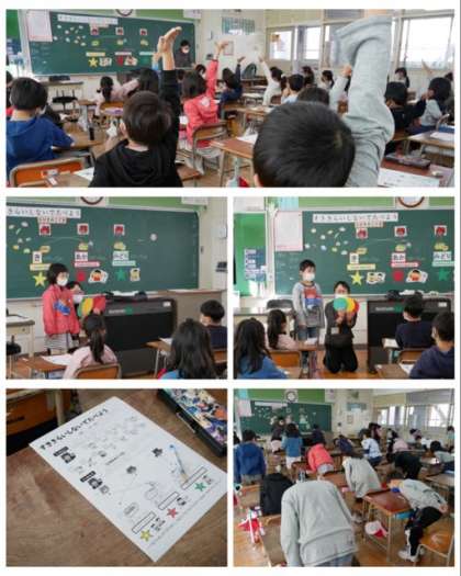 1年は、栄養指導で赤・黄・緑の食べ物について教えていただき、どの色の食べ物も好き嫌いなく食べることの大切さを学びました。