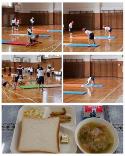 6年は、体育科のマット運動で開脚前転や後転倒立など、自分の課題を解決するために練習していました。