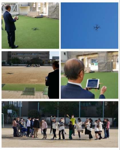 6年は、地域の方のご厚意でドローンを使って上空から人文字や円陣になって記念撮影をしました。卒業アルバムの思い出の写真に加えたいと思います。