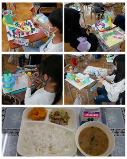 4年は、図画工作科で作成していた「コロコロガーレ」の仕上げをしていました。