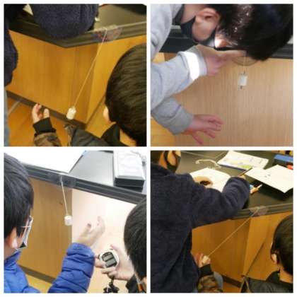 5年は、理科のふりこの学習で、分度器とストップウォッチを使ってふりこの周期を測定していました。