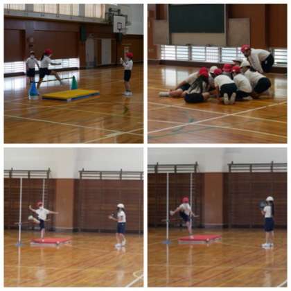 4年の体育科の走り高跳びでは、友だちの跳んでいる様子をタブレット端末で動画撮影をして跳ぶ時のフォームをチェックして改善していきました。