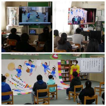 今日は、民族学級の活動の一年間のまとめとして、朝の児童集会の時間に全校に活動報告をし、午後に修了式を行いました。
