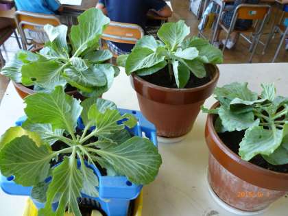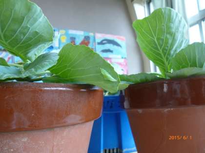 3年生が教室で育てている、モンシロチョウの幼虫が「サナギ」になっていました。無事に羽化しますように・