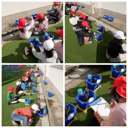 1年は、チューリップが成長している様子を観察して記録しました。