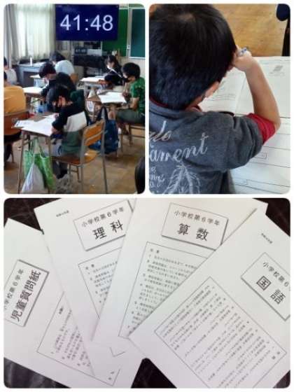 6年生が全国学力・学習状況調査を行いました。今年度は、国語・算数に加え、理科も入れて、3教科です。みんな真剣に最後まであきらめず、挑戦していました。