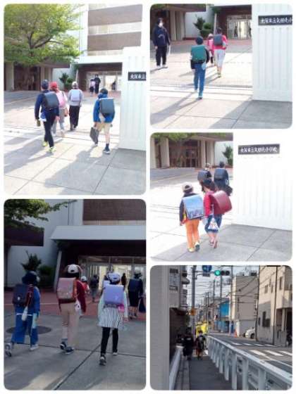登校の様子です。みんな元気に「おはようございます」とあいさつをしています。今週も頑張りましょう!!