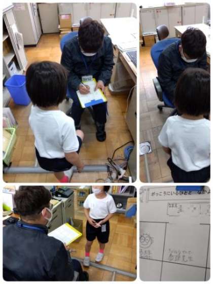 先日、1年生が生活科の学習で「学校たんけん」をしました。その発展として、「学校にいる人となかよくしよう」の学習を進めています。緊張しながら、教頭先生にサインをもらっていました。
