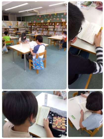 図書室をのぞいてみると、みんな真剣に読書をしています。4年生の図書の時間です。「読書は、心の栄養」です。たくさん読書をしてくださいね。