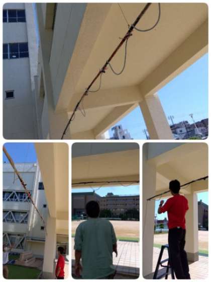 本校の管理作業員、職員でミストを設置しました。気温が高くなり、熱中症の心配も懸念されます。適度な休息と水分補給をしっかりとる対策をしてまいります。