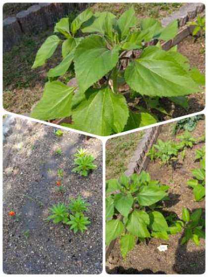 3年生の学習園です。ひまわり、マリーゴールド、ホウセンカが育っています。