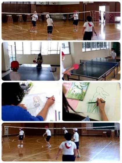 4・5・6年生は、月1回クラブ活動を行います。バドミントンクラブ、卓球クラブ、マンガクラブの様子です。どのクラブもみんなで協力して、楽しく活動しています。