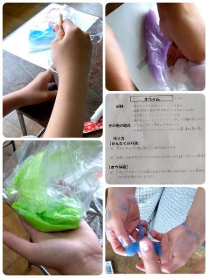 4・5・6年生は、月1回クラブ活動を行います。屋外スポーツクラブは、キックベースボール。パソコンクラブはプログラミングでクイズを作っています。ハンドメイドクラブは、スライムづくりに挑戦していました。どのクラブもみんなで協力して、楽しく活動しています。