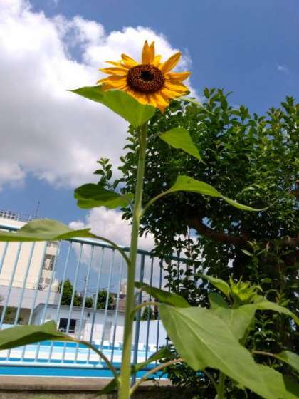 3年生が育てている「ひまわり」が咲きました!!青空にむかってぐんぐん伸びる姿は、とてもすがすがしく感じます。矢田北小学校の児童もひまわりのように大きく育ってくださいね。