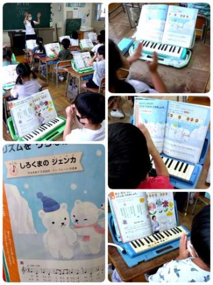 1年生の元気な歌声が教室から響いてきます。「矢田北小学校 校歌」や「しろくまの ジェンガ」「ブン ブン ブン」など、リズムを感じながら楽しく元気に音楽の勉強をしています。(7月14日 記事)