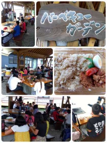 まずは、昼食です。宿舎の前のバーベキューガーデンで美味しくいただきました。午後からの活動頑張ります。