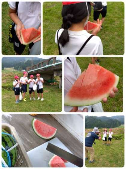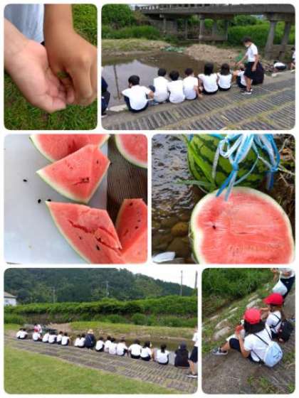川の水で冷やしたスイカは、とても美味しかったです。川を見ながら、ゆっくり過ごしました。