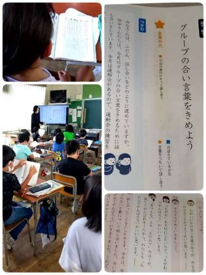 3年生の教室では、国語「グループの合言葉をきめよう」の学習を進めています。「話す・聞く」の学習です。