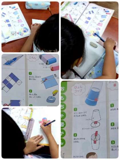 2年生が夢中で机に向かっています。そっと見てみると、「設計図」を作っていました。生活科で学習している「おもちゃ図鑑」の中で、自分がつくりたいおもちゃの設計図を作っていました。「ぴょんコップ」「とことこ車」「ころころころん」など、楽しそうなおもちゃがたくさんあります。