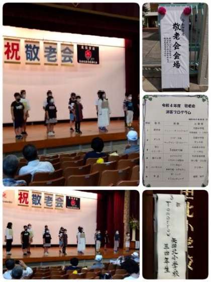 本日、矢田北小学校の講堂で、矢田北社会福祉協議会の「矢田北地区敬老会」が開催されました。矢田中学校、矢田北小学校、矢田北保育園の生徒・児童・園児がお祝いの演技や歌を披露しました。