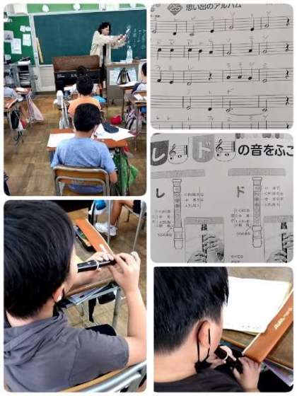 3年生の音楽の授業の様子です。リコーダーの練習をしています。リズムにあわせて、ゆっくりとタンギングに気をつけながら吹いていました。どんどん練習して、上達するように頑張りましょうね。