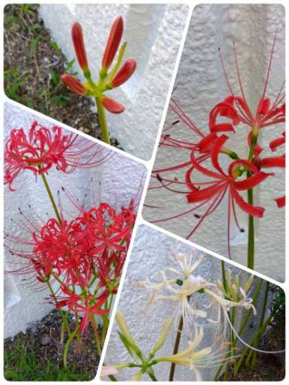 校内に彼岸花が咲いています。白色の彼岸花もあるんですね。少しずつ、秋の気配が近づいています。