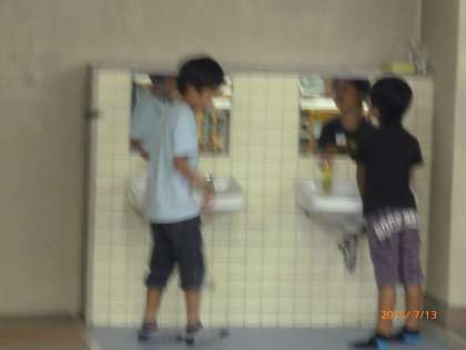 3時間目は、5・6年生のプール水泳です。みんな忙しそうです。