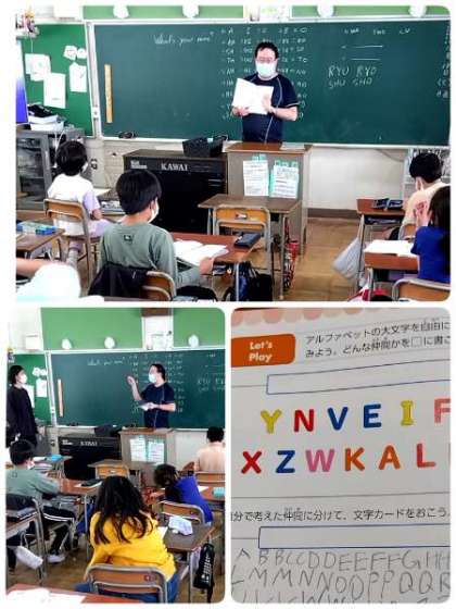 3年生の外国語の授業です。アルファベットをたくさん覚えました。アルファべットを使い、自分の名前を言えるように学習しました。