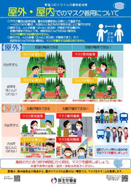 マスクの着用について(屋内・屋外)【厚生労働省より】
