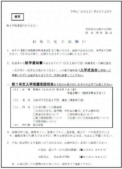 入学保護者説明会について(令和5年2月1日(水)実施)