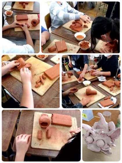 5年生の図工の時間です。土粘土で、沖縄の「シーサー」を作成していました。どんな「シーサー」が完成するか楽しみです。