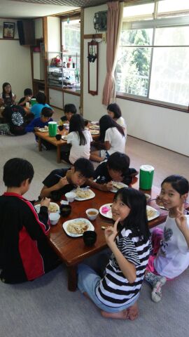 美味しいお昼ご飯をいただいています。みんな、とても元気にしています。