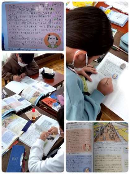 4年生の社会です。「大和川のつけかえ」について学習しています。今日は、付け替え工事に「反対」「賛成」に分かれて、意見をまとめていました。(12月9日 記事)