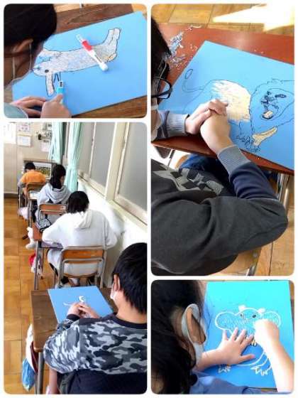 4年生の図画工作です。「版画」の学習を進めています。彫刻刀を丁寧に使い、慎重に作業を進めていました。どんな作品になるか楽しみですね。