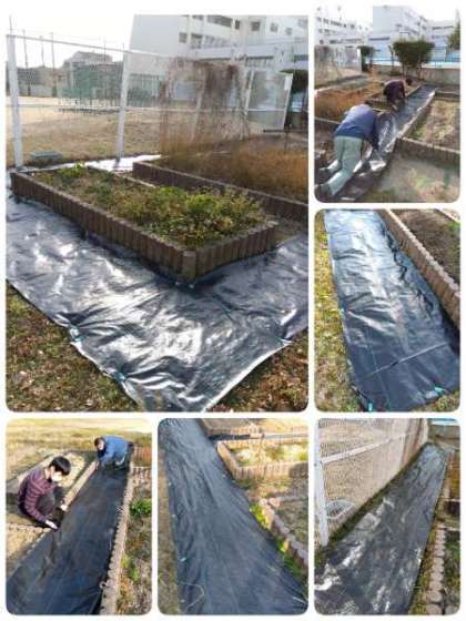 学習園に雑草除けのシートを引きました。子どもたちの水やりや観察がしやすくなるように環境整備を進めています。(1月6日 記事)