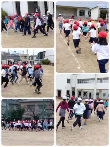 準備運動の後、運動委員会の児童が低学年をリードし、始まりました。「自分のペース」で「長く続けて、同じペース」で走ることが大切です。どの学年の子どもたちも目を輝かせながら、走っていました。頑張りましょうね!!