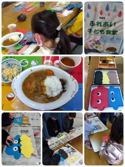 1月の矢田北「ふれあい子ども食堂」の様子です。毎月1回土曜日11時30分より、矢田北会館で行われています。本日は、カレーライスでした。