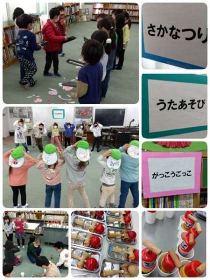 はじめの言葉や各コーナーの説明など、1年生もかっこよく、発表することができました。昔遊びや歌遊び、魚つりや学校ごっごなどのコーナーで楽しく体験できました。ランドセルの体験コーナーでは、園児にやさしく声をかけている姿も見られました。