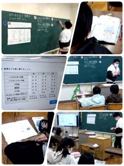 6年の算数の学習です。めあては、「自分の考えをもって、優勝するクラスを予想しよう」で、データを見て、自分の考えを発表します。「なぜ、そのように予想したのか」自分の考えをしっかりと説明していました。